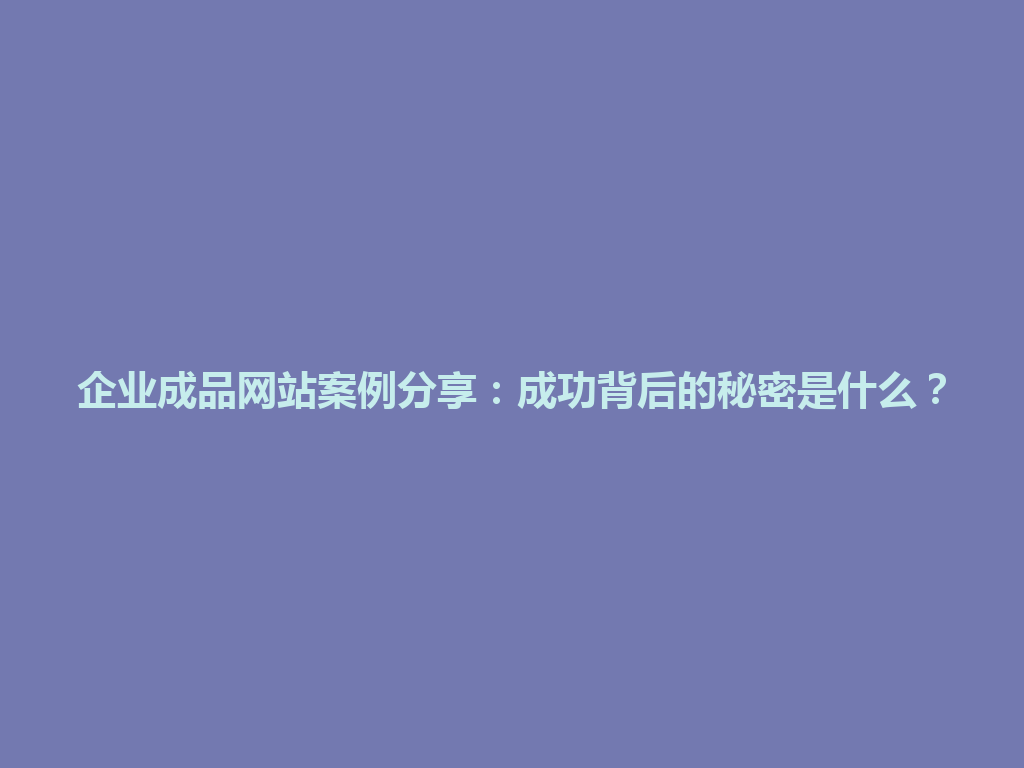 九寨沟县企业成品网站案例分享:成功背后的秘密是什么?